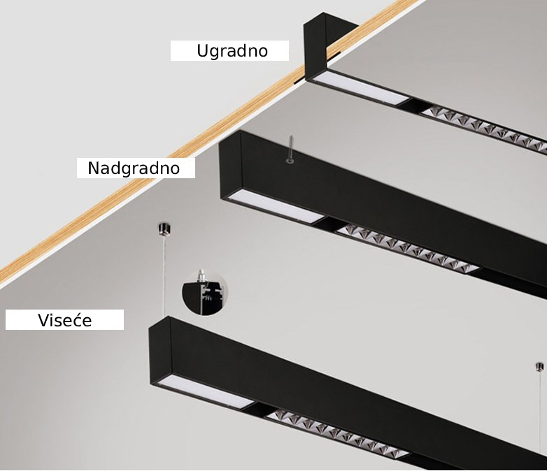 Magnetna šina (track) – dostupna u ugradnoj, nadgradnoj ili visećoj varijanti.